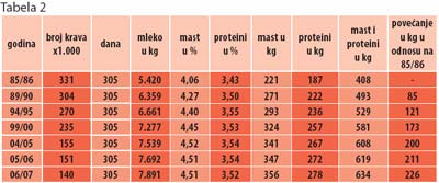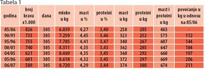 Da bi se razumela važnost koju ova grana poljoprivrede ima, treba najpre reći da Holandija ima 21.000 farmi mlečnih goveda sa prosečno 70 grla na farmi, što daje ukupno 1.400.000 mlečnih krava. Proizvodnja mleka sa njima dostiže cifru od 11,1 miliona tona mleka, ili, po farmi 575.000 kilograma. U kontroli mlečnosti, crnobele HF krave proizvode u proseku više od 8.300 kg mleka za 305 dana laktacije (tabela 1), a crveno- bele više od 7.300 kg (tabela 2).