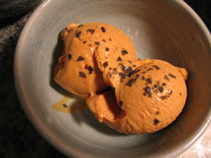 Penasto umutite jaja sa šećerom i dodajte ispasirane banane. Posebno umutite pavlaku u čvrst šlag pa sjedinite sa prethodnom masom. Stavite u zamrzivač da se stegne.