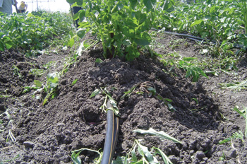 funkcionisanje su znatno niži u odnosu na sisteme za orošavanje. Moguće je vrlo precizno i blagovremeno primeniti optimalne količine vodorastvorivih đubriva kao i sredstva za zaštitu od štetočina (zlatica, žičnjaci) Nedostatak je relativno viša cena ulaganja za trake koje se nabavljaju svake godine i posao oko prikupljanja traka sa parcele (moguće je mehanizovati). Korišćenjem ovakvog načina navodnjavanja u ogledima postizali smo prinose od 80 t/ha tržišnih krtola.