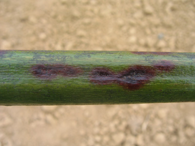 period niskih temperatura. Zbog toga i jeste veliki problem kontrole ove bolesti. Izdanci zaraženi u tekućoj vegetaciji se ne prepoznaju do proleća sledeće godine. Već rano u proleće ožiljeni izdanci se vade i koriste za podizanje novih zasada a da se ne primeti da su oni zaraženi. Na njima se zaraza uočava tek u martu ili aprilu tj. posle podizanja zasada.