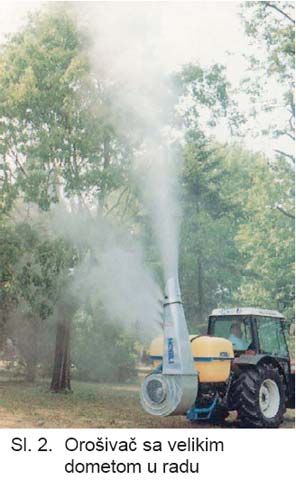 Bez svake sumnje, u voćarskovinogradarskoj praksi razvijenih zemalja kao i kod nas najviše se koriste orošivači na kojima se nalazi aksijalni, eventualno radijalni ventilator. Međutim, da bi se dobilo na kvalitetu orošavanja na te ventilatore se nadograđuju usmerivači (deflektori) čije rešenje i sistem podešavanja zavisi od vrste voća, razvijenosti i uzgojnog oblika zasada.