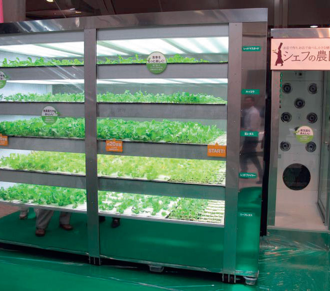 Proizvodnja povrća nikada nije bila jednostavnije nego sada sa mašinom nazvanom Šefova farma, koju je izumeo “Dentsu Facility Management Inc”, a koja je prvi put prikazana na “Internacionalnoj izložbi prehrambenih mašinerija i tehnologija” održanoj u Japanu. Ovo čudo koristi specijalne fluorescentne sijalice od 40 vati, ravnomerno postavljene unutar hromiranog kućišta (čije su dimenzije 3,94 x 1,46 x 2,33m) koje je pogodno za postavljanje u bilo kom restoranu. Mnoge vlasnike ni cena od 90.000 dolara neće sprečiti da obogate svoj meni ponudom sopstvenog, lokalno proizvedenog povrća.