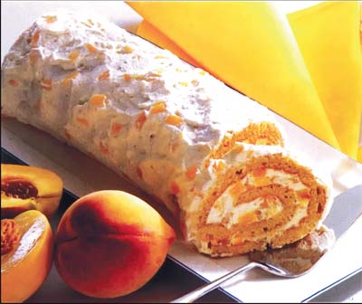 Zagrejte rernu na 180 stepeni. Umutite sneg od belanaca, soli i jedne kašike vode. Dodajte šećer i vanilin šećer a na kraju umešajte žumanca i brašno. Pecite u podmazanom plehu 12-15 minuta. Pokrijte kuhinjskom krpom i ostavite da se ohladi. Breskve prelijte vrućom vodom pa oljuštite koru i iseckajte na komadiće i pomešajte ih sa 1 kašikom soka od limuna. Umutite slatku pavlaku sa vanilom i 1 kašikom narendane kore od limuna. Dodajte breskve i 1 kašiku meda. Sa dve trećine nadeva premažite koru, uvijte u rolat a jednom trećinom premažite rolat okolo.