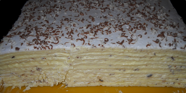 Braon fil: Od 1 litra mleka, 4 pudinga od vanile i šećera po ukusu skuvati fil. U toplo dodati 150 gr mlevene plazme i 200 gr bele čokolade. Dobro izmešati da se ne stvore grudvice. Kada se fil ohladi dodati umućen margarin i 100 grama posebno poparenih mlevenih oraha.