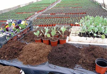 U poslednjih nekoliko decenija sve više se u proizvodnji rasada, a naročito u saksijskom gajenju cveća i povrća ili u plantažnoj proizvodnji u vrećama, šire različite vrste sekundarnih ostataka kokosa: vlakana, kore ili delimično kompostirana masa (cocopeat), koja obično sadrži precizno izbalansiran odnos frakcije kratkih vlakana i kompostiranih opiljaka. Ovaj organski materijal karakterišu veoma dobre osobine vezane za visoku poroznost (94-96 % Vol.), vazdušni kapacitet (10-12 % Vol.)., visok kapacitet razmenljivosti katjona (CEC 60-130 meq/100g), slabije sleganje tokom proizvodnog ciklusa i izuzetno visok kapacitet držanja vode (8 do 9 puta viši od suve mase kokosa). Veoma je značajno do po RHP načelima, EC kokosove kore bude između 1 i 1,8 dS/cm jer zbog korišćenja morske vode u njegovoj fabrikaciji, obično se konduktivitet kod neobrađenog proizvoda kreće daleko više, od 2,5 do 3,5 dS/cm.